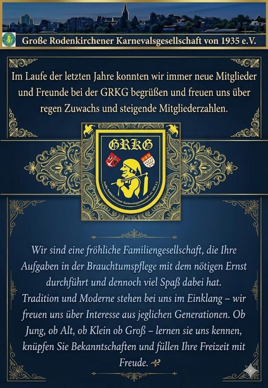 Du hast verschiedene Möglichkeiten einen Aufnahmeantrag in unsere Gesellschaft zu stellen. Du kannst das nachstehende Formular ausfüllen oder einen Aufnahmeantrag (PDF) herunterladen und ihn ausgefüllt per Briefpost (GRKG Geschäftsstelle, Saarstr. 42, 50996 Köln) oder eingescannt an geschaeft@grkg.de versenden. Bitte denke an die Unterschrift.